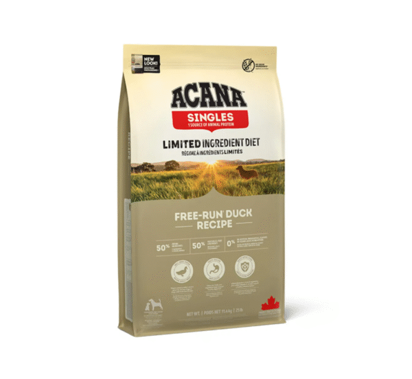 Ofera-i cainelui tau o dieta de calitate superioara cu ACANA Singles Free-Run Duck, ce are un amestec unic de pere barlett si rata, si este plina de carne, organe si cartilaje in raport wholeprey.