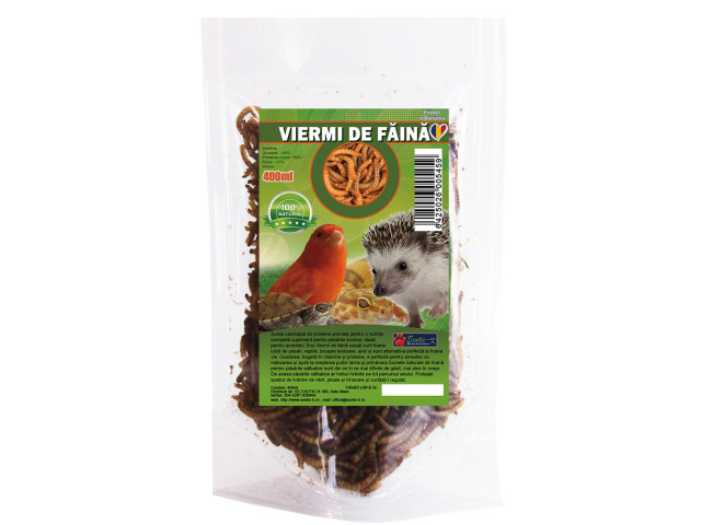 Exo Viermi de faina uscati sunt foarte iubiti de pasari, reptile, broaste testoase, arici si sunt alternativa perfecta la hrana vie.