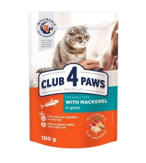 Hrana completa si echilibrata pentru pisici adulte, preparata cu 76% ingrediente din carne si peste in fiecare bucata. Club 4 Paws Premium cu macrou este imbogatita cu acizi grasi Omega 3 si Omega 6 pentru o piele sanatoasa si o blana stralucitoare, iar formula exclusiva INTEGRAMIX sustine sistemul imunitar si sanatatea generala a pisicii.