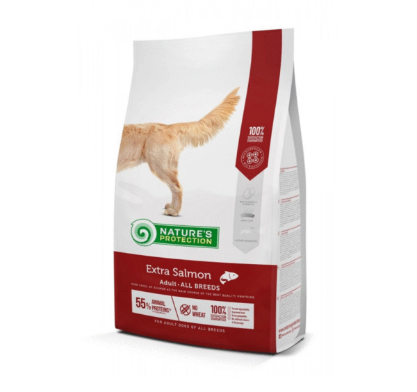 Nature’s Protection Extra Salmon – nutritie de top pentru vitalitate zilnica, sanatate digestiva si o blana care straluceste de sanatate.