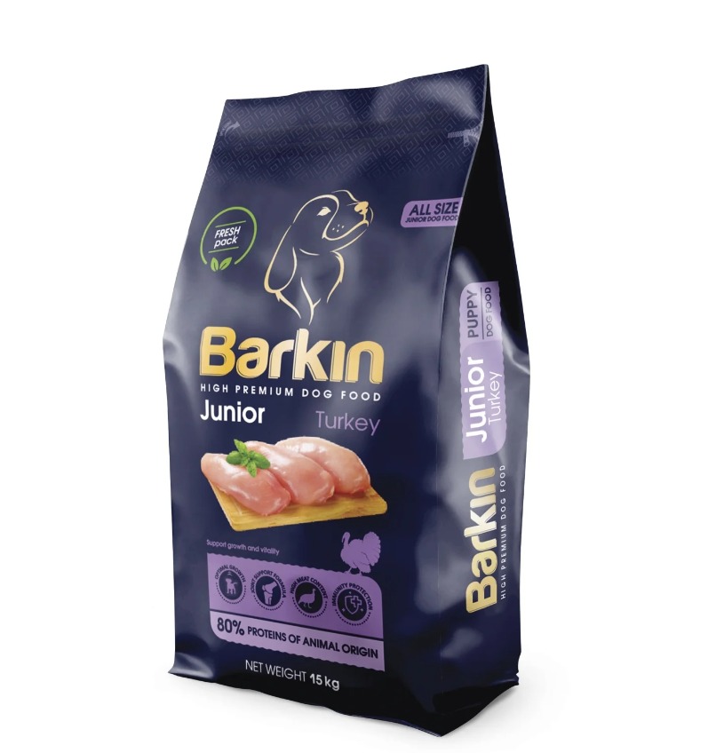 Barkin Junior All Size – Hrana uscata premium – Curcan – 15kg este o hrana completa destinata cateilor si cainilor juniori din toate rasele si taliile. Conceputa pentru a sustine cresterea armonioasa si dezvoltarea sanatoasa, aceasta formula ofera toti nutrientii esentiali necesari in perioada de dezvoltare.