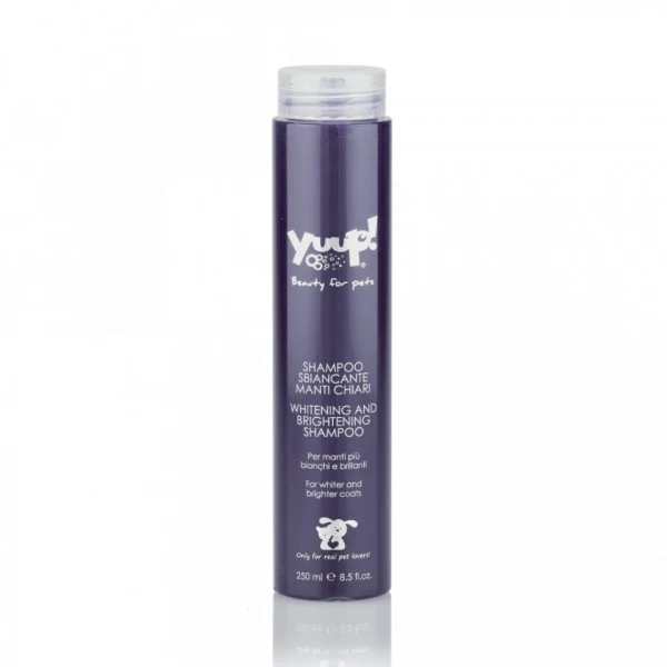 • Sampon cu efect de albire, special conceput pentru blana alba, datorita unui pigment specific care neutralizeaza culoarea ingalbenita a parului inca de la prima aplicare