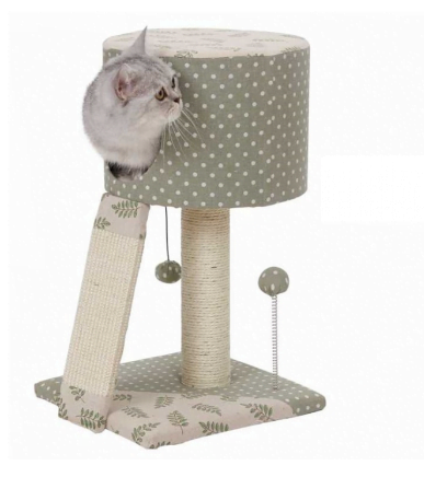 Sisalul Mon Petit Ami Simba cu un design luxuriant vine in intampinarea tuturor felinelor de apartament cu doua spatii special destinate ascutirii gherutelor si cu un spatiu foarte comfortabil unde pisicile se pot bucura de momentele pretioase de odihna. Imbracat in material textil si fibre naturale, sisalul este prevazut si cu doi ciucuri care stimuleaza curiozitatea ludica a felinelor.