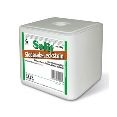 Bloc alb de sare minerală de 10 kg pentru grajduri sau paddock-uri.